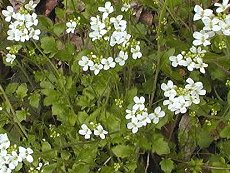 4〜8月ごろ山地の湿気の多い日当 たりの良い場所に生える 花壇にも使いたい可愛い花ではあ るが、開花期が短い 6mm程度の十字架状の花を株いっ ぱいにつける 草丈40cmまでで枝を張り、白い小 さな花をたくさんつけて美しい 葉は細長く鋸歯状 似ているスズシロソウ