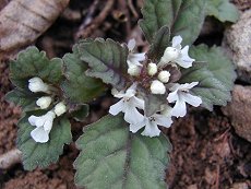 白から薄紫色までの花 きらん草より花はすこし大きめ 4、5月咲 落葉樹の下等明るい場所に生える 落葉樹の新葉が展開しないうちに 花が咲く 葉脈が赤紫色を帯びるのでこう呼 ばれたのか? まばらに繁殖する 花径5mm程度 草丈5cm位 同じしそ科できらん草に似ている