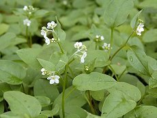 亀の形をした葉に5、6mmの白い 小さな花を咲かせる 5、6月咲 木の下の陰で湿って肥えた場所に 集団で生える むらさき科の花はかわいい小さな 花が多い 草丈20cmまで