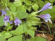昔のこと、京の羅生門に住んでい た鬼の手に花が似ている(伝説) 鮮明な紫色をしている 花は径2cm位の大きさ 湿気のある半日陰の道傍などに生 える 葉はいら草に似ている 先とがりのハート型で葉脈が明確 4〜5月咲 草丈30cmまで 日陰で涼しそうに咲いている