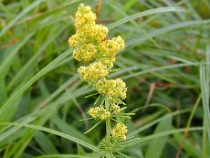 7〜8月咲き すこし高い山の縁などや草原に生 える 茎は四角形でこまかい毛がある 黄色の花は個性がある 葉は松葉に似て細長く、8枚程度 輪状にでる 草丈60cmまで 花の白いものが河原松葉