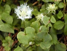 8〜9月咲き 12mmくらいの小さな花 少し高地の、沢ぞいの岩や湿地な どに生える 葉は波打った円形で茎を取り巻く ひっそり咲く白い花なので見過ご しやすい 草丈は30cmまで