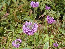 9〜10月咲き山地の草原に生え る 小さな紫の集団花が細くて長い茎 の上部に咲く まばらで散らばって生える 草丈50cmまで