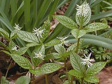 4〜5月に咲く 長さ1〜2cmのブラシ状の白い花 葉は4枚付く 株立ちで繁殖する 明るい落葉樹の下に生える 二人静より小型で早めに咲く 歯間ブラシに似ている? 草丈10cm前後