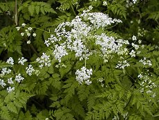 にんじん型で表面が光沢のない2 回羽状複葉 花茎を伸ばして白い花を多数咲か せる 5、6月咲 道端の湿気の多い腐葉分がある 肥えた場所に生える 花茎の先端は10cm位に拡がり集 団花を付ける 草丈70cmまで 種が衣服につくのでシラミにたと えた