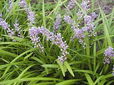 8〜10月に咲く 薄い藤色の穂状の花 穂の長さ10cm位 名前は花が蘭に似ているため 葉色と花がいかにも涼しそう 山地や海岸の林縁などに生える 藪の中にもあるので藪蘭 半日陰から日当たり地まで 草丈50cmまで グランドカバーに良い