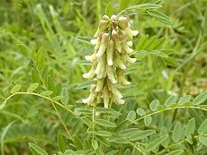 6〜7月咲き 草原や河原に生える この花は道路沿いの土手に生え ていた 薄い黄色の豆状の花 根をかむと非常に苦く目が眩むの でクララだ 根を秋か冬に採取し、刻んで日干 しし保存する 草丈1.5mで株状に枝を多数出す 虫下しや健胃用に利用