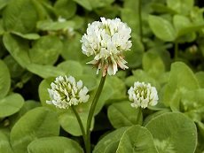 5〜8月咲き 四つ葉探しが出来る 香りも良い 蜂蜜も取れる 花飾りも出来る 蜜蜂が好む いつたん畠に進入すると退治する のに大変な労力が必要となる 昔は物を輸送するときに、この草 を乾燥して中に詰め緩衝材とした 利用方法:牧草 花言葉:約束 四葉は幸運
