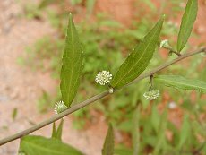 8〜10月に開花 湿気の多い半日陰の山裾や道沿い に生える 葉は互生し葉脇に6mm程度の小花 を咲かせる 茎の下部で分枝し、四方に細くて 長い脇枝を伸ばす この写真は脇枝の中間位を写して いる 草丈1m以下