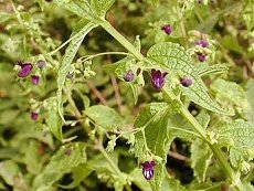 8〜9月に開花 山地の林縁や道沿いに生える 花に特色があり黒紫色で花径6mm 程度で小さい 葉色は浅い緑色で対生し、葉型は 楕円の先尖りで鋸葉 草丈70cm以下