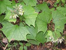 9〜10月に咲く 半日陰の森縁や山地の道沿いに生 える 白い花 まさにコウモリが羽を広げたよう な葉型 草丈70cm以下