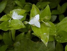 6〜8月咲 常緑 暖地の山野や道沿いに生える 梅雨時に咲く 露草のように枝を伸ばし茂る 草丈は50cm以下 白い3弁の花で整形