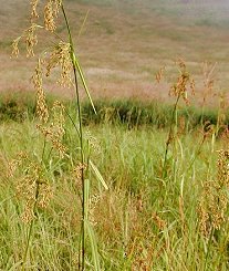 7〜10月に開花 日当たりの良い湿地に生える 花が油色をしている 細長い葉と細長い茎 花を先端だけでなく下のほうにも つけている 草丈60cm以下
