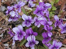 3〜4月に咲く 日当たりの良い道端などに生える 花の大きさは12〜20mm程度 すみれより1ヶ月くらい前に咲く 全体に短い毛がある 葉は垂れて横に広がり光沢は少 ない 花が拡がり、よく見えるのですみ れより派手だ 花色に幅がある 多年草で草丈15cm以下 道の割れ目などにも生えている
