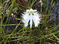 7〜8月に咲く 日当たりの良い湿原に生える 花径3〜4cm程度 葉は細長く湿原では雑草に混じっ てわかりにくい 花は白いので明確 サギが飛んでいるようだ 盗掘されやすい花で激減している 花には3cm程度の距があり垂れ下 がる 同属には原野に咲く花の大きいダ イサギソウがある 栽培には湿地生まれで乾燥に弱い ので水やりは十分に与えてやる
