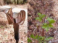 花は白と茶の縦縞の仏炎苞(ぶつ