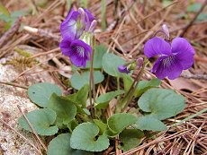 3〜5月に濃い赤紫の花を咲かせ る 花径2〜3cm程度 葉も丸いが花弁も丸みを帯びて美 しい 芳香がある 乾き気味の山地に生える 草丈10cm以下 葉がハート型で丸く緩やかな鋸歯