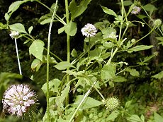 8〜10月に薄いピンクの花を咲か せる 花径2cm程度 日当たりの良い山地に生える 花が丸い玉状になっている 草丈は2mまで 実の形も円形