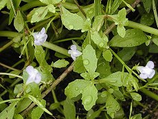 8〜10月に薄水色の花を咲かせる オシベは4本 花径1cm程度 水田や畦に生える 似ている花では同属のアゼナがあ り葉の縁が鋸歯でなく丸い 草丈は20cm以下