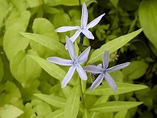 5〜6月咲 池など水辺で湿気の多い土地に生 える 花径2〜3cm 淡い青紫色の5弁花 花名は横から花を見ると丁字に見 えることから 地味目の花だが花色が爽やかだ 葉は互生する 草丈70cmまで 毒草なので注意