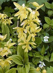 4〜5月咲 山地樹下に生える 文字通り黄色の花 花径30mm程度 海老根より花も葉も大型 草丈は花を入れて50cm以下