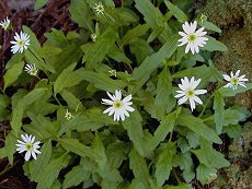 4〜7月咲 山地の日陰に生える 花は白色で花径は3cm程度 清楚な花だ 集団を作る 葉は細長く大きなギザギザがある 草丈50cmまで この花の栽培種が都忘れ