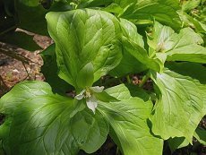 4〜6月咲 山地の少し湿った樹下に生える 花は白色 葉は3枚で輪生し花をひとつ咲か せる 草丈40cmまで 花径40mm程度 花は横向きに咲く 普通のえんれいそうを見る 大花のえんれいそうを見る