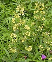 7〜8月咲 黄色の5弁の花 湿地気味の草地に生える 茎の先端に円錐状に花を多数つけ る 花径15mm程度 柔かい黄色でやさしい感じだ 葉は対生し2枚から4枚輪生する 葉は細長く先端が尖り葉柄がない 葉は光沢がない おかとらのおと同時期に咲くこと がある 別名硫黄草