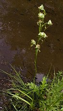 7〜9月咲 薄緑色の花 花径1cm程度 細長い茎に花をつける 日当たりの良い湿原に生える らん科にしては綺麗な花ではない 花の距が垂れ下がり先端が膨れる 葉は細長く申し訳についているよ う 花がトンボの顔に似ているようだ 花を入れて草丈60cmまで