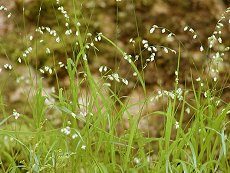 5〜7月に穂状に白い小花を咲かす 山地や道沿いに生える 風に吹かれている様は美しい 草丈50cm以下 白い花が米粒のよう