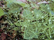 5〜6月に白い4弁の小花を咲かす 明るい山地の樹下に生える 地を這うように生えている 全体がか細く霞(カスミ)のよう で優しい感じがする 葉が4枚輪生しており、それぞれ 対向する対の葉どうしの長さが違 う 草丈40cm以下 花も散らしたように咲く