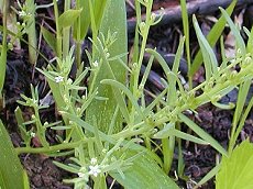 4〜6月に葉脇に白いがくが5裂し た小花が咲く 花弁はない 日当たりの良い草地に生える 山焼きをした後に生えていた 半寄生植物 草丈20cm以下