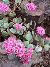 8〜9月にピンクの星型の花を集 団で咲かせる 花径15mm程度 葉は円形 茎は長く垂れる 岩場に生える 似ている花では小豆島にミセバヤ が生える(10〜11月) 青森地方にツガルミセバヤ、北海 道にカラフトミセバヤが生える 似ていてどれも美しい 鉢物に利用する