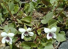 4〜5月咲き 田や畠の土手、道端に咲く 白い色の横張り性のすみれ 草丈20cmまで 変種に湿地に生えるあぎすみれが ある 山振(やまぶき)の 咲きたる野辺の つぼ菫 この春の雨に 盛りなりけり 高田女王