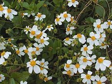 9〜11月に咲く 花が大きくて花径30mm程度 九州南部や沖縄に生える こせんだんぐさに白くて大きい花 びら(舌状花)がついている変種 花の小さいものを小白の栴檀草 大きいものを白の栴檀草と言う 道沿いや荒地に生える 同属で花の綺麗なウインターコス モス