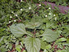 9〜11月に白い小さな花を咲かせ る 花径8mm程度 湿気の多い樹下や溝に生える ノブキを思わせる地味な花 草丈は1m以下 名前は葉が大根に似るため