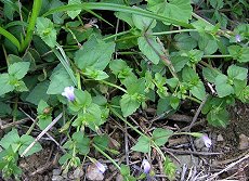 8〜10月咲 花色は薄紫 花径は7mm程度 葉脇から花柄を伸ばし細長い花を 咲かせる 畑や道端に生える 名前は実が瓜の形をしている事か ら 草丈10cmまでで地面を這う 花が横を向いたゴマノハグサ独特 の形をしている