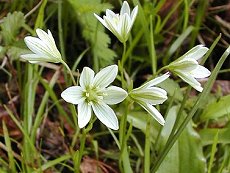 5〜6月に咲く 白色の6弁の花で緑の筋が入る 花は一茎に2〜4個つく 葉は細長い 花径12mm程度 明るい山地の草原に生える 花茎高さ20cm以下 アマナ キバナノアマナ チシマアマナは中部以北の山岳地 に生える