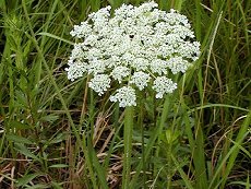 7〜9月咲き 白い集団花で径15cm程度 野草的で咲くと結構美しい 日当たりの良い道脇に生える 葉は2〜3回3出複葉 小葉は細く繊細で面白い 茎には小毛がある 草丈150cmまで 根は細く食用にはならない 人参の原種でそっくり