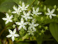 9、10月咲き 花は抱え咲 せんぶりの花を大型にした様 林間のすこし湿気のある土地に生 える しろい花はすこし暗くても良く見え る 花に薄いグリーンの斑がある 草丈1mまで