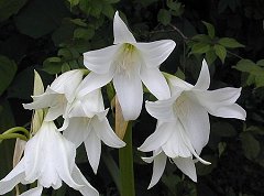 秋植え 有機質を多めにいれてやる わりと寒さに強い草丈1mまで 6〜7月咲き 冬に葉が枯れても発芽し開花する ハマユウと違い寒さに強く関東以南 でも栽培出来る 花色は白のみ 百合に似た淡い香り がする 同属の暖かい海岸に自生するハマユ ウは花びらが細く花の数が多い 利用方法 花壇用