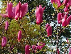 早春か秋の芽が動かないうちに植え る 3〜4月に咲く 木は白木蓮のように大きくならない 花色は紫、赤、ピンクがある 樹高6mまでの落葉低木 利用方法: 庭木、切花 花言葉:自然への愛