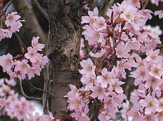 3月の彼岸ごろ咲く 花径3cm位 早めに咲く桜で、この花が咲く頃は まだ寒い 花はピンクで葉はまだ出ない 春を告げる桜か? 枝が細く立性 日当たりの良い場所に植える 樹高は低い 良く分枝する 用途:庭木や花材に利用