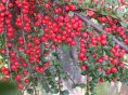 5〜6月に白から淡紅 色の小さな花を咲か せる 9〜10月に赤く丸い 実を枝一杯につける 径5mm程度 枝は地面を這い又下 垂し、トゲはつかな い 日当たりの良い場所 に植える 半常緑または落葉性 半つる性 繁殖は種まきか挿し 木 用途:鉢植え、グラ ンドカバーや庭木に 利用