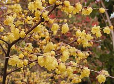 12、1月開花 花はロウの様に融けそう 香がよく芽が出ないうちに花だけが 咲く 日当たり地に植える 樹形もまとまりが良い 花は下向きに咲く 華やかさは無いが落ち着いた感じの 木 落葉の低木 5mまで 寒さにも強い 利用方法: 庭木、切花