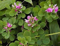 7〜9月頃開花 葉に抱かれる形で咲く 花穂は他の萩より短い 葉は名前の通り丸い 葉は3枚づつ付く 花径1.5cm位 日当たりの良い山野に生える 草原でソフトに咲いている花 樹高1mまでの落葉低木で、冬に は枝がほとんど枯れる 同属の山萩 栽培種の宮城野萩 用途:庭木など