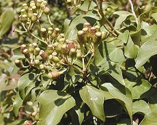 10〜11月に黄緑色の集団花を枝