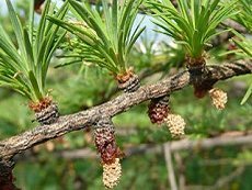 5月に開花(まつぼっくり) 落葉する針葉樹は珍しい 木肌は黒褐色 この林のやわらかな緑は美しい 明るい林なので手入れされている と散歩にも良い 樹高30mまでの落葉高木 用途:公園、建築、土木、パルプ 、街路樹用 花言葉:大胆