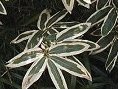 晩秋から葉の縁が白くなり、くまどるので名がついた 小葉が普通の笹より幅広で白い部分が広いので配色が美しい 樹高1.5mまで 用途:庭木、公園用