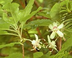 6〜7月ごろ白い花を咲かす 花は5裂し赤い斑点がある 花径2cm程度 花や葉に小毛がある 普通の山地に生える 葉は互生し楕円で長さ5cm以下 つつじにしては異型 花は少し反り返る 落葉低木で樹高2m以下 内気そうに葉の中に隠れて花が咲 く 用途:鉢植え